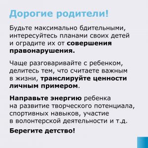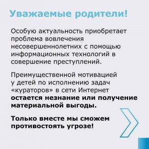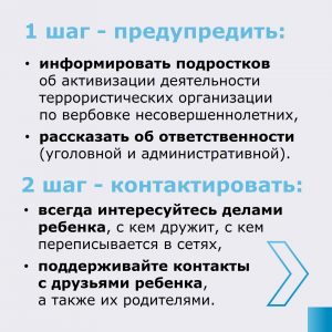 Уважаемые родители! Будьте максимально бдительными,чаще разговаривайте с рёбенком, делитесь тем, что считаете важным в жизни, транслируйте ценности личным примером. Направьте энергию ребёнка на развитие творческого потенциала, спортивных навыков, участие в волонтёрской деятельности и т.д.